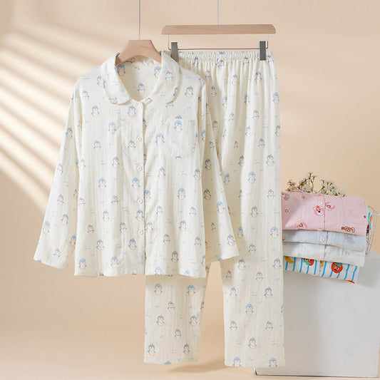 Pure Cotton Breathable Cartoon Lapel Student Summer Loungewear Suit