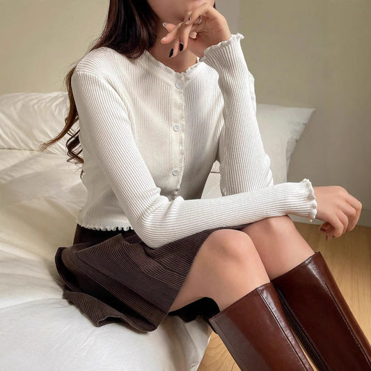 Solid Color Stringy Selvedge Sweater Coat For Women