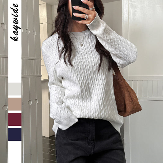 Mock Neck Cable-knit Sweater Loose Pullover Women