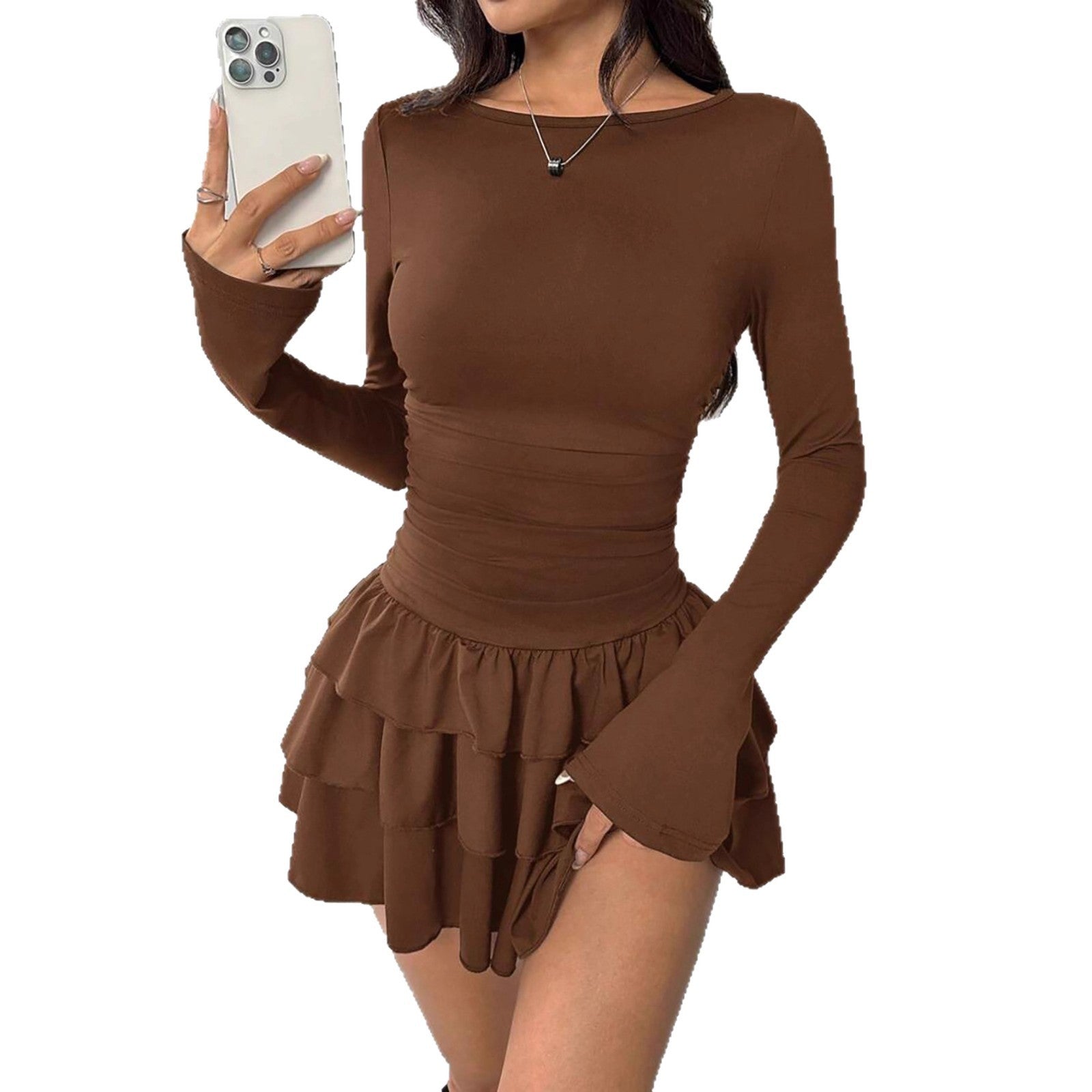Autumn And Winter Solid Color Slim Fit Slimming Temperament Long Sleeve Dress