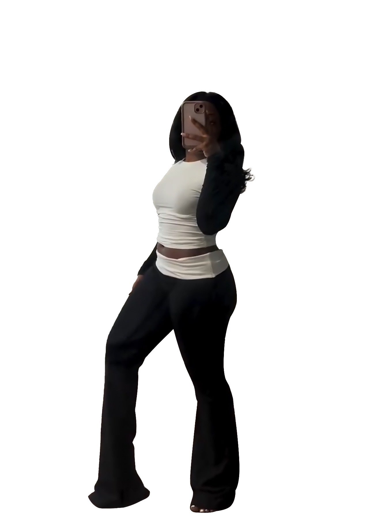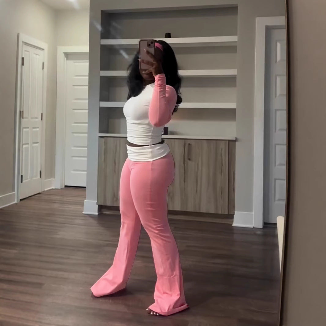 Contrast Color Tight High Waist Fold Slim Fit Velvet Sport Suit
