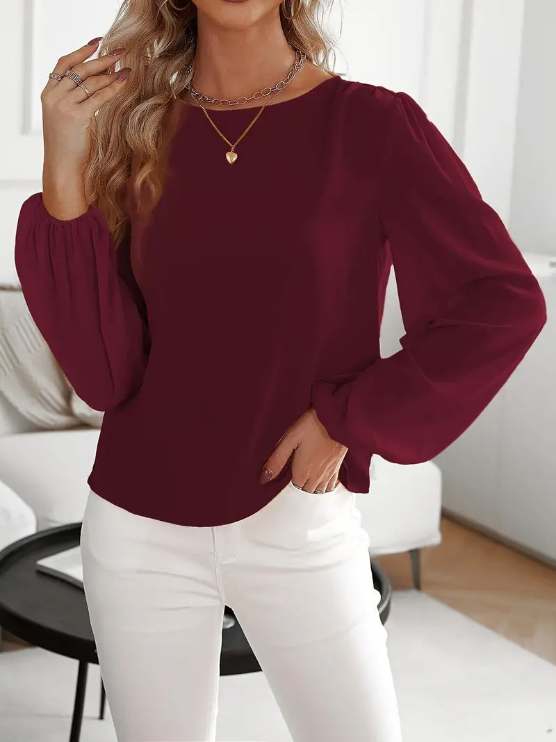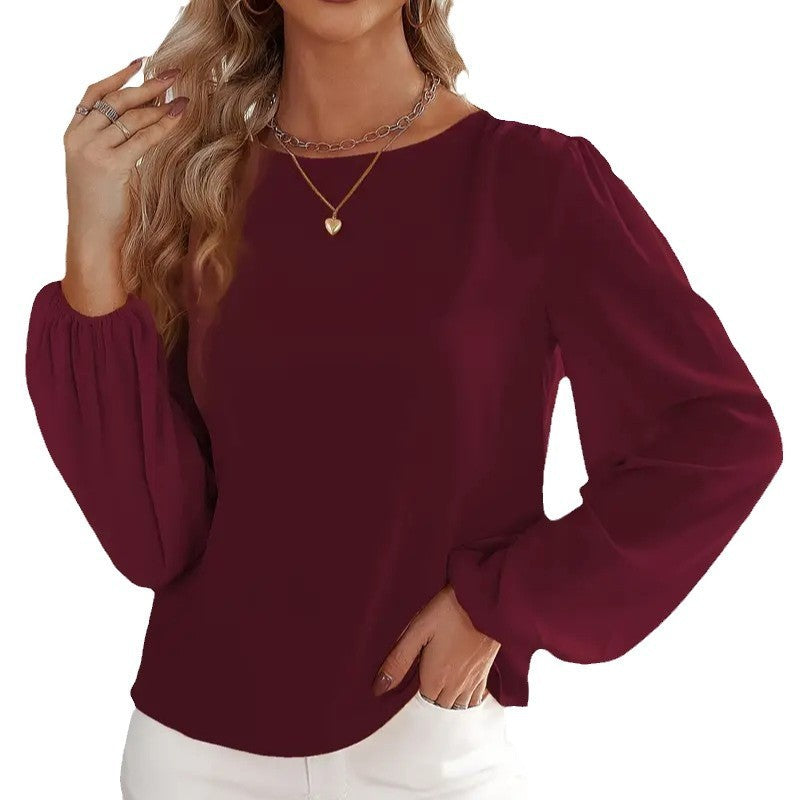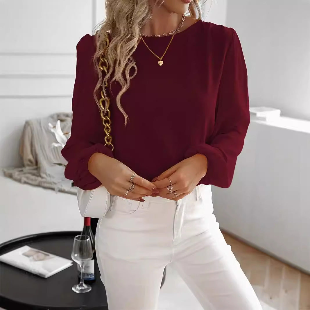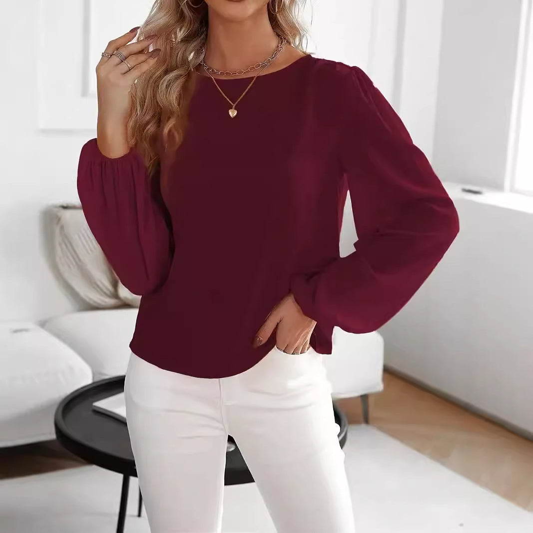 Solid Color Round Neck Long Sleeve Top