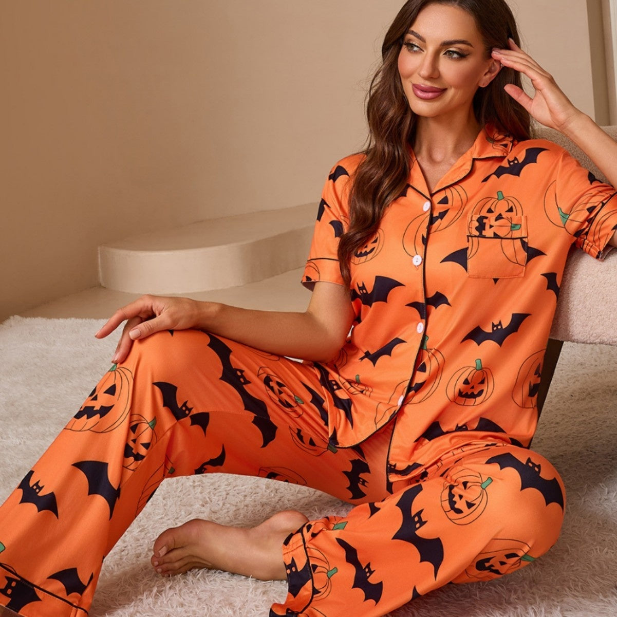 Women's Printed Pajamas Suit Fashionable Short-sleeved Shirt And Trousers