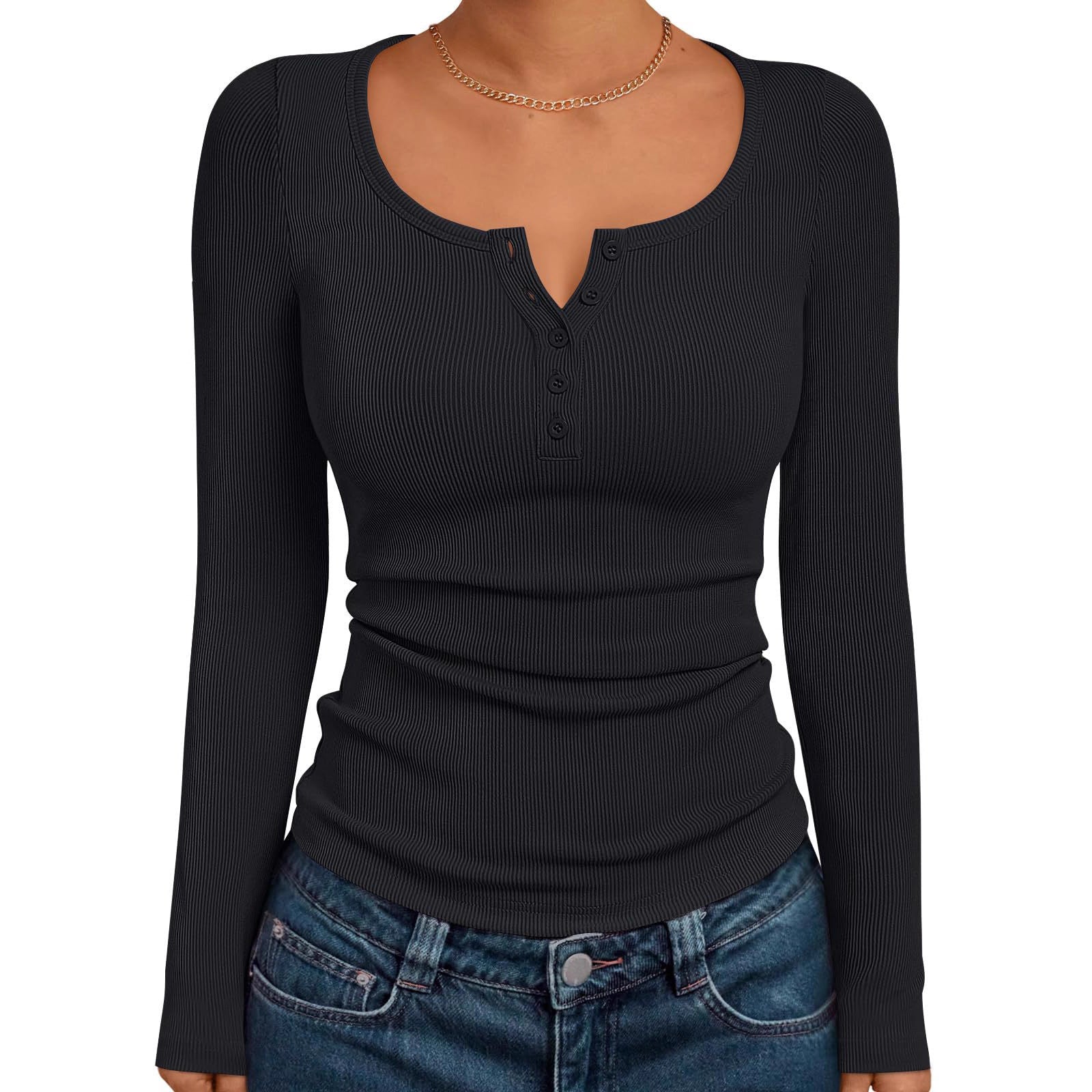 Women's Solid Color Buttons Long-sleeved T-shirt Thread Knitted Top