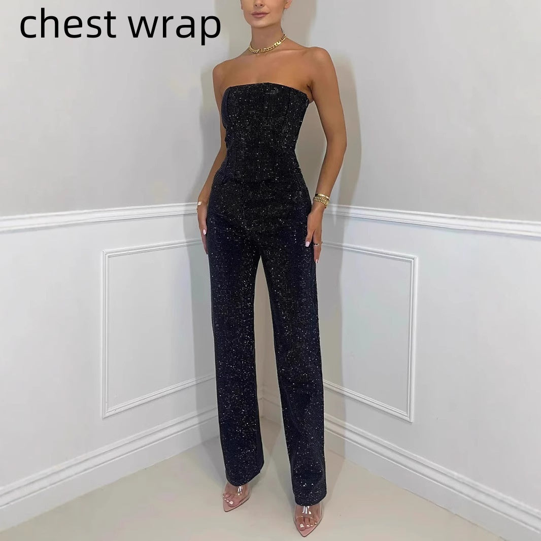 Women's Sparkling Vest And Diamond Trouser Suit